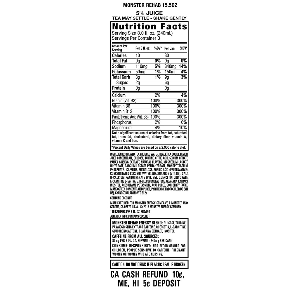 Java monster nutrition label. Java Monster Calories and Nutrition Information. Page 1 What are Nutritionix Track app users eating from Java Monster ? Popularity. 1. Energy Drink, Salted Caramel. 100 cal. 2. Mean Bean Coffee Energy Drink. 160 cal. Amazon.com: Monster Energy Java Monster Kona Blend, Coffee + Energy ... KILLER FLAVOR | Kona Blend Java Monster… premium coffee brewed up with a killer Kona coffee and cream flavor, supercharged with the Monster energy blend and 200mg of caffeine per can ; STOCK UP WITH A 12 PACK | Available in a convenient pack of 12 ; Due to new FDA nutrition labeling requirements, product labels may vary from those pictured. Top 50 Consumer Staples Stocks | MarketBeat The Coca-Cola Company, a beverage company, manufactures, markets, and sells various nonalcoholic beverages worldwide. The company provides sparkling soft drinks; flavored and enhanced water, and sports drinks; juice, dairy, and plant … Java Monster Swiss Chocolate, Coffee - amazon.com Due to new FDA nutrition labeling requirements, product labels may vary from those pictured Shop for global treasures with live virtual tours Amazon Explore Browse now Monster Energy Java Monster Mean Bean, Coffee + Energy Drink, 15 Ounce (Pack of 12) 15,135 11 offers from $21.46