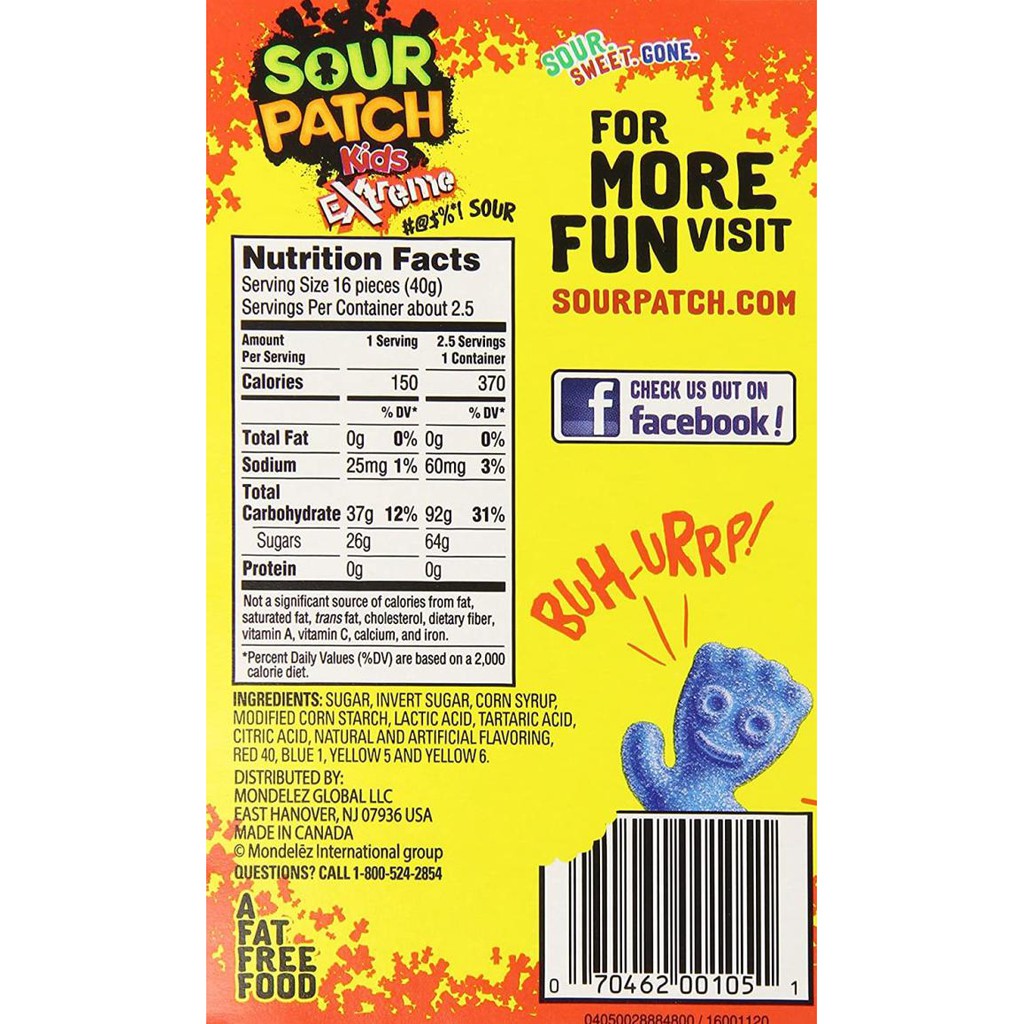 Sour patch nutrition label