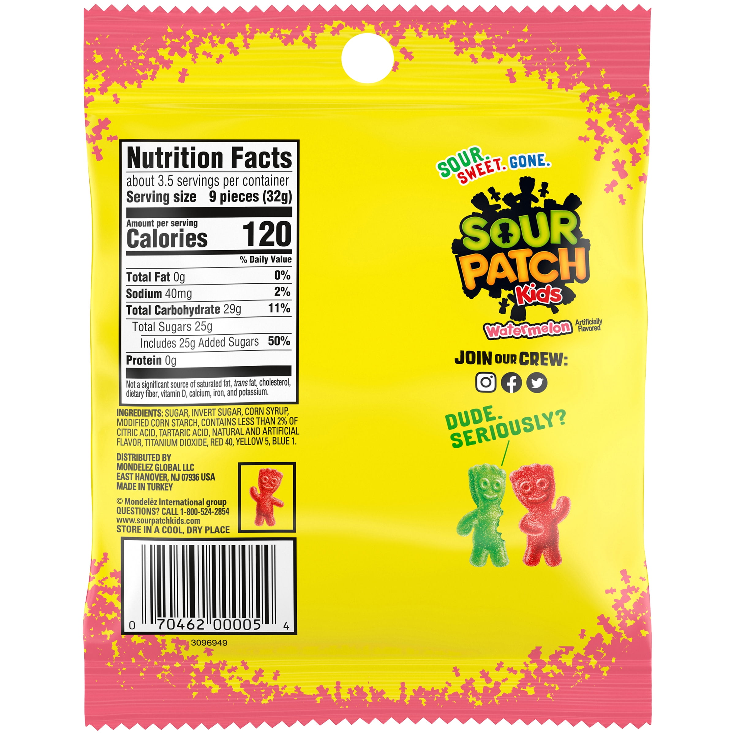 43 sour patch nutrition label