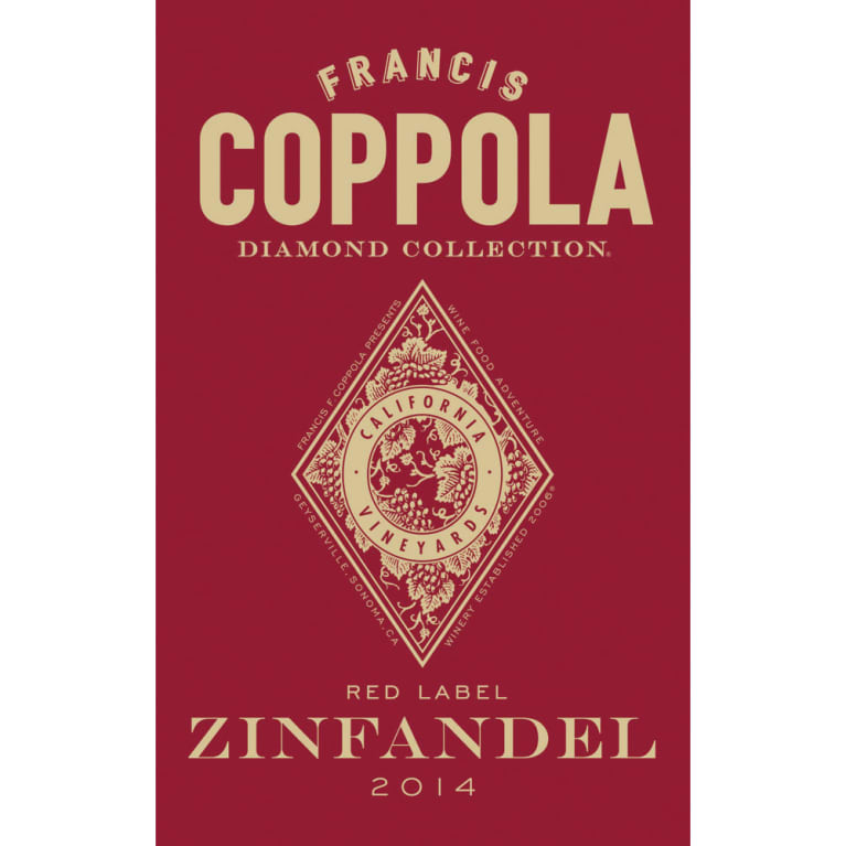 Francis Ford Coppola Diamond Collection Zinfandel 2014 - wine Francis Ford Coppola Diamond Collection Zinfandel 2014 Zinfandel from California 750ML / 13.6% ABV 2004 WS86 Currently Unavailable $14.99 Alert me when new vintages are available Also, alert me about new products from this winery 3.7 6 Ratings Have you tried this? Rate it now Winemaker Notes