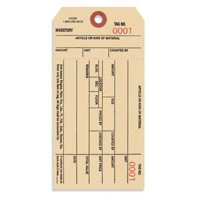 Inventory Tags in Stock - ULINE - Uline Uline stocks a wide selection of Inventory Tags. Order by 6 pm for same day shipping. Huge Catalog! 12 locations across USA, Canada and Mexico for fast delivery of Inventory Tags.