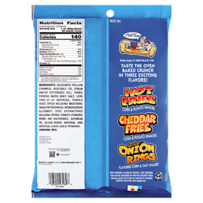 ANDY CAPP HOT FRIES 48/1.5 OZ - Conagra Foodservice Each bag contains 1.5 oz with 210 calories per serving and 0 grams trans fat. Includes 48 bags. Andy Capp's has been providing a unique and delicious ... Chester's Flamin' Hot Fries - Shop Snacks & Candy at H-E-B Shop Chester's Flamin' Hot Fries - compare prices, see product info & reviews, add to shopping list, or find in store. Select locations now offer curbside ... › products › chesters-flamin-hot-fries-flavored-corn-potato-snacksCHESTER'S® FLAMIN' HOT® Fries Flavored Corn & Potato Snacks - ... CHESTER'S ® FLAMIN' HOT ® Fries Flavored Corn & Potato Snacks When CHESTER CHEETAH puts his name on a snack, you can count on a bold and cheesy flavor like you’ve never tasted. CHESTER’S ® snacks are made with a special blend of real cheese seasoning to give each bite the perfect pop and zing. › food › nutritionHot Fries Nutrition Facts - Eat This Much Amount of Calcium in Hot Fries: Calcium 60mg. 7%. Fatty acids. Amino acids. * The Percent Daily Values are based on a 2,000 calorie diet, so your values may change depending on your calorie needs. Report a problem with this food. Find on Amazon. Percent calories from...